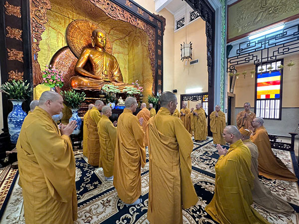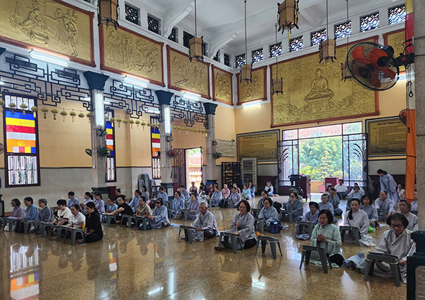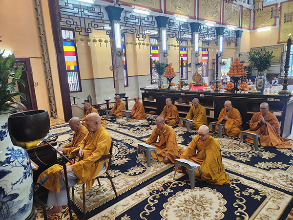 Chư Tăng và Phật tử tụng thời kinh A Di Đà