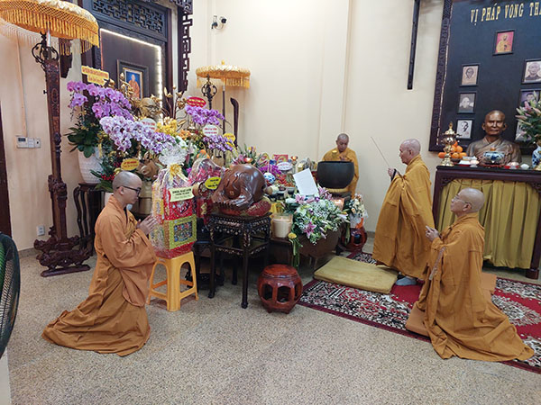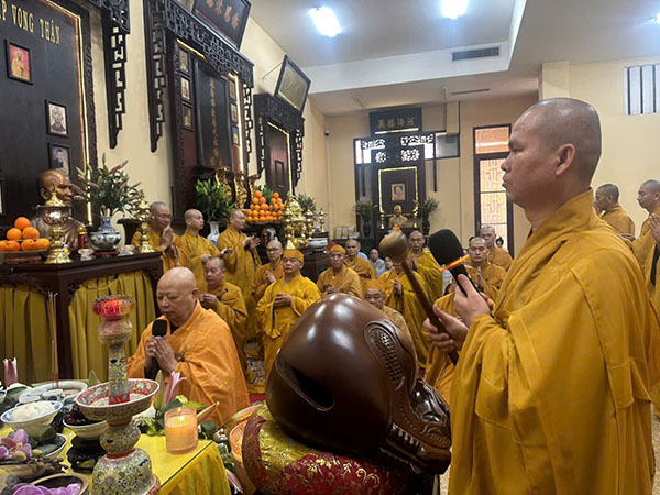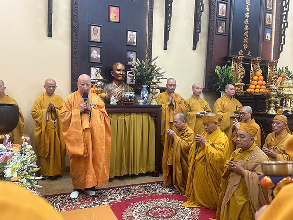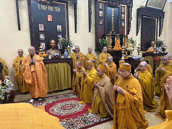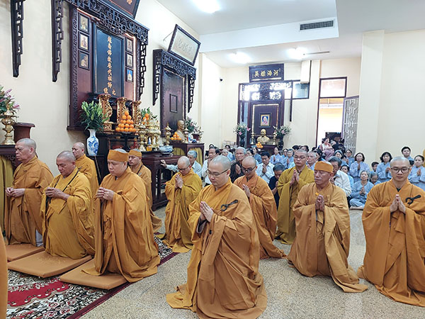 Trước án thờ Giác linh Trưởng lão Hòa thượng Thích Hiển Tu, Hòa thượng Thích Lệ Trang, Phó Chủ tịch Hội đồng Trị sự, Trưởng ban Nghi lễ T.Ư, Trưởng ban Trị sự GHPGVN TP.HCM, cùng chư tôn đức Ban Trị sự Phật giáo TP.HCM đã thành kính đảnh lễ, tưởng niệm bậc Trưởng lão của Phật giáo Việt Nam, vị giáo phẩm đã gắn bó với Phật sự Thành phố qua nhiều giai đoạn lịch sử, nhân lễ Đại tường của ngài.