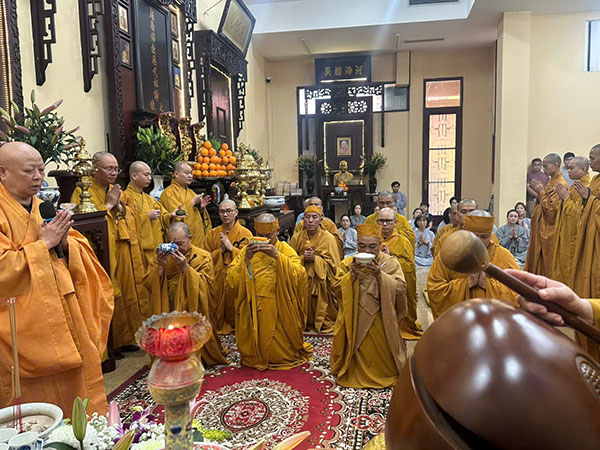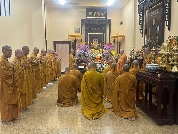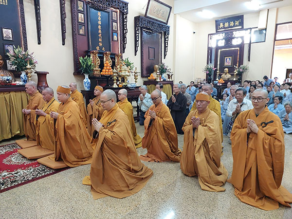 Toàn thể chư tôn đức và Phật tử đã dâng hương tưởng niệm và đảnh lễ cố HT Thích Hiển Tu, cầu nguyện Hòa thượng cao đăng Phật quốc.