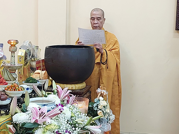 Sang ngày 21/1/2026, là lễ cúng ngọ và tiến sư, Thượng tọa Thích Quảng Chơn, Trưởng ban Nghi lễ GHPGVN TP.HCM truy tán công hạnh của Trưởng lão Hòa thượng đối với Phật giáo Việt Nam.