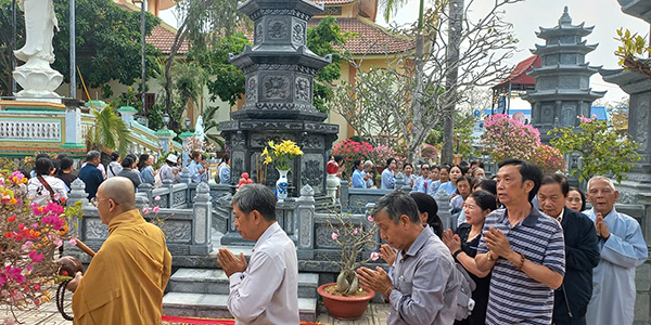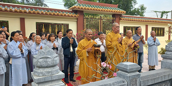 Chư Tăng và phật tử trước bảo tháp của HT. Thích Hiển Tu