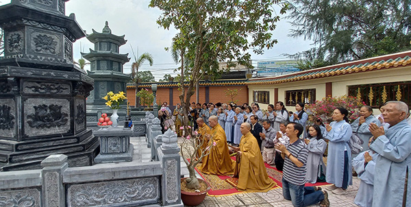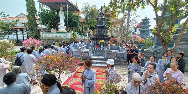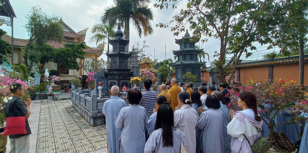 Sau khi bạch Phật, lạy Tổ, chư Tăng và Phật tử đã nhiễu 3 vòng quanh tháp để tưởng nhớ cố HT. Thích Hiển Tu.
