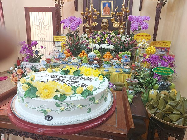 Dâng nước, cơm, trái cây đến giác linh HT Thích Hành Trụ