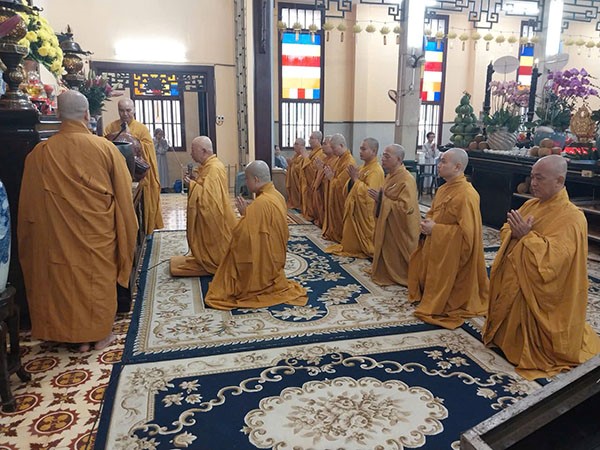 Chư Tăng và Phật tử đảnh lễ HT Thích Hiển Tu, cầu nguyện Hòa thượng cao đăng Phật quốc.