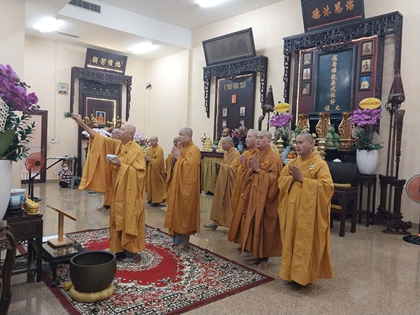 Toàn thể chư tôn đức và Phật tử đã dâng hương tưởng niệm và đảnh lễ cố HT Thích Hiển Tu, cầu nguyện Hòa thượng cao đăng Phật quốc.