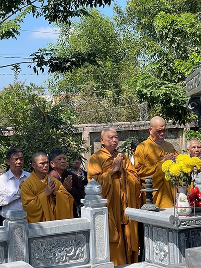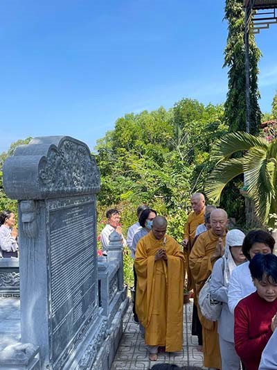 Chư Tăng và Phật tử trước tháp của HT. Thích Hiển Tu.