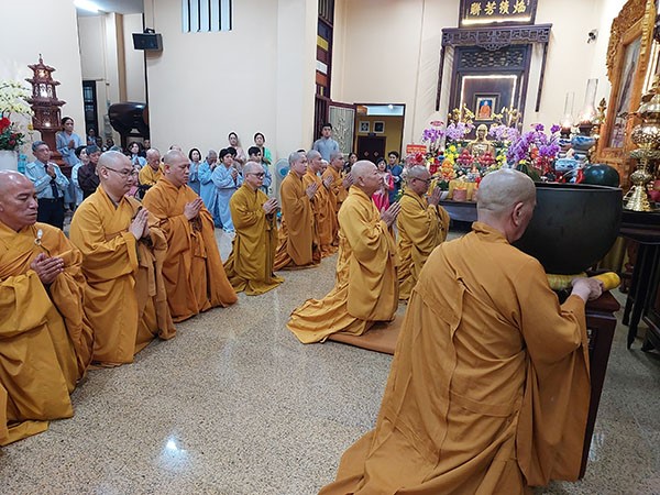 Trước đó chư Tăng và Phật tử đã có thời kinh sám hối tại Chánh điện. Trong không khí vui Xuân cuối năm, chư Tăng và Phật tử không quên tưởng nhớ cố Hòa thượng Thích Hiển Tu, Phó Pháp chủ Hội đồng Chứng minh GHPGVN, Chứng minh BTS GHPGVN TP.HCM, Viện chủ Chùa Phật học Xá Lợi.