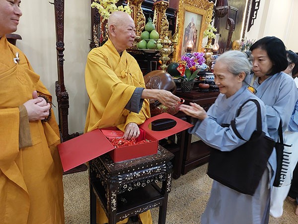 Hòa thượng Trụ trì và Thượng tọa Thích Phước Triều, Phó Trụ trì Chùa Phật học Xá Lợi và chư Tăng đã thay mặt Ban Quản trị trao lộc Xuân cho Phật tử.