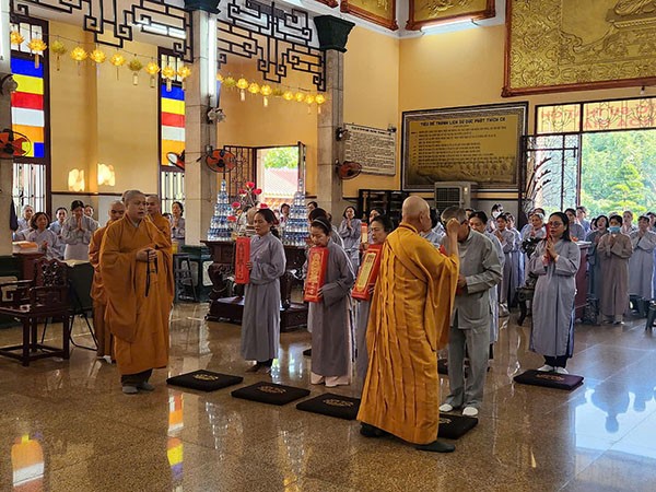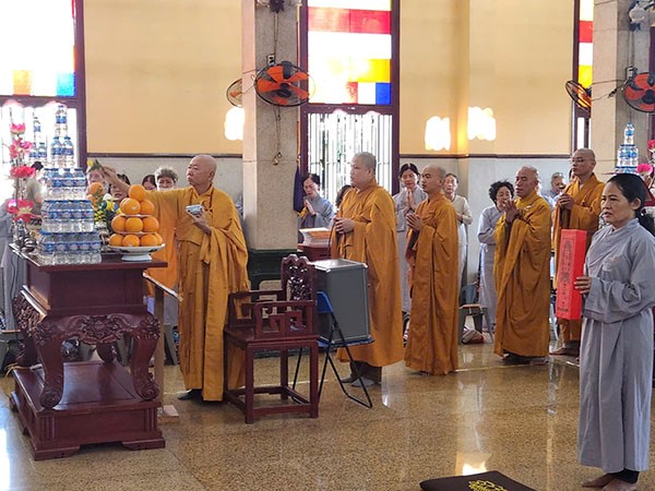 Cư sĩ Minh Ngọc, Phó Trưởng Ban Phật học, thay mặt Phật tử đã tác bạch với Hòa thượng trụ trì và chư Tăng về những phát triển của chùa trong năm qua, đồng thời chúc Tết Hòa thượng trụ trì và chư Tăng. Phật tử cũng chúc Hòa thượng trụ trì pháp thể khinh an, tuệ đăng thường chiếu để dìu dắt chư Tăng và Phật tử trên con đường tu tập.