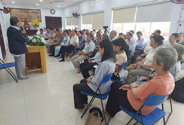 Sau đó, tại phòng Thiền, đã có buổi nói chuyện về đề tài: “Vai trò của người cư sĩ hộ pháp trong thời đại truyền thông 4.0” do Bác sĩ Đỗ Hồng Ngọc, cố vấn Ban Phật học trình bày.