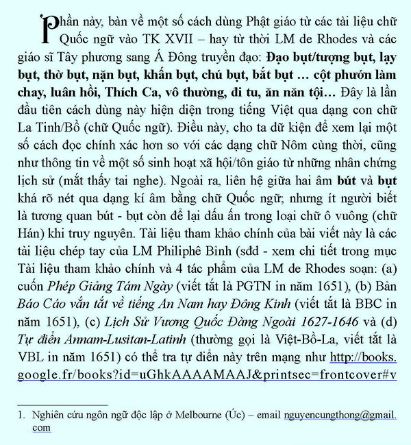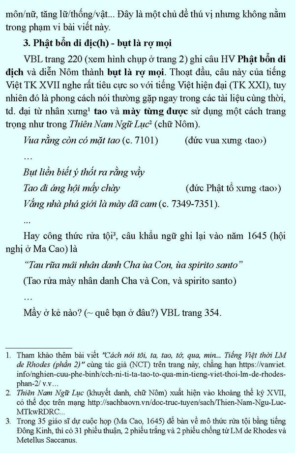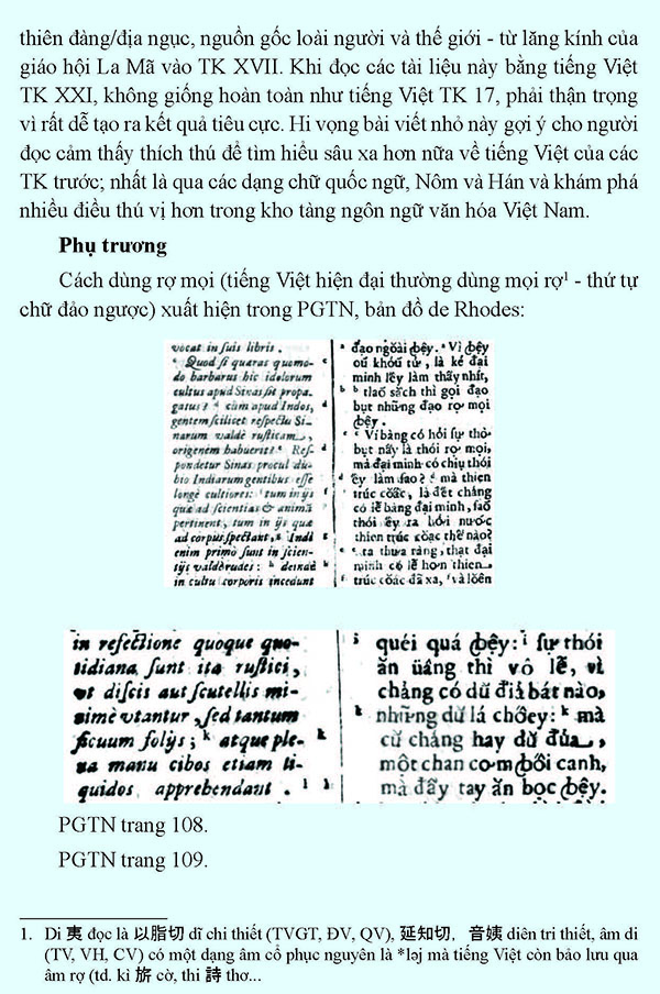 TIẾNG VIỆT TỪ TK 17: MỘT SỐ CÁCH DÙNG
