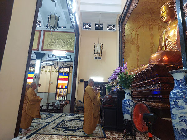 Chư Tăng cùng Phật tử đảnh lễ Phật và tụng Sám khánh đản Đức Phật