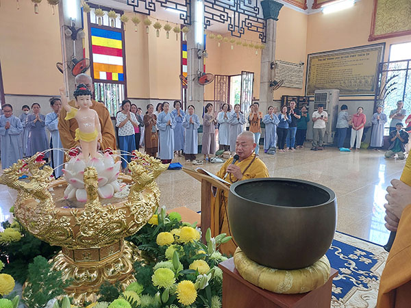 Sau nghi lễ niệm hương, chư Tăng cùng Phật tử đã đảnh lễ Phật. Sau đó, chư Tăng cùng Phật tử đã tụng Sám khánh đản Đức Phật và cầu nguyện quốc thái dân an, thế giới hoà bình, chúng sinh an lạc.